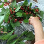 あるおばあさまが、ご自宅の庭になったさくらんぼをご持参くださいました。 みんなで、収穫。 つまみ喰いしながら。 甘い!