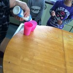 春休み。 まめ家に来ている子供のために、シャボン玉の液を作ってあげている。