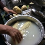 先日、あるご家族からいただいた、筍。 あく抜きするために、お米のとぎ汁はとっておいた。 あるおばあさんに、「どうしたらいいですか?」とアドバイスを求めたところ、いつの間にか、筍は剝きおわっていた。 「とぎ汁で湯がくんだよ」