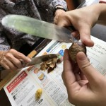 ケーキ生地を型抜き? クリーム的な? 栗? この後、ミキサー? どうやら、モンブランケーキになるらしい。