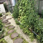 いろんな弦が伸びてきた きゅうり かぼちゃ ミニトマト なす おくら