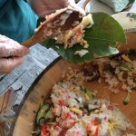 自宅の庭に朴葉の木がある、おばあさま。 久しぶりに、朴葉寿司しよう!と盛り上がって、庭で採ってくださった葉を、持参くださいました。 本当は、若葉の頃が朴葉寿司の季節らしいので、今頃は季節を外しているのですが、それはこの際、いいでしょう。 おばあさま方が代わる代…
