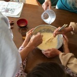 キャベツやネギを刻む 山芋をする タネを混ぜる 皆の力の結集で、とても美味しいお好み焼きが出来ました。