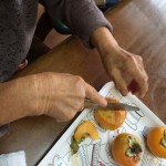 あるおばあさまが下さったザクロと、皆で剝いて干した柿。 秋の味覚です。
