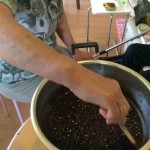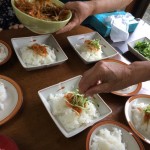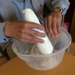大根おろし。 結構、力仕事です。 というわけで、任命されたのは、男性2名。 お昼御飯がかかっているので、頑張って!