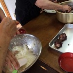 飛騨の荘川生まれのおばあさまに教わって、みんなで作りました。 おばあさまが、自宅のほおばの木の葉を採ってきてくださったので、それを使わせてもらいました。 おばあさまの自宅にほおばがあるのは、やっぱり荘川が懐かしいからかな? とても美味しく出来ました。